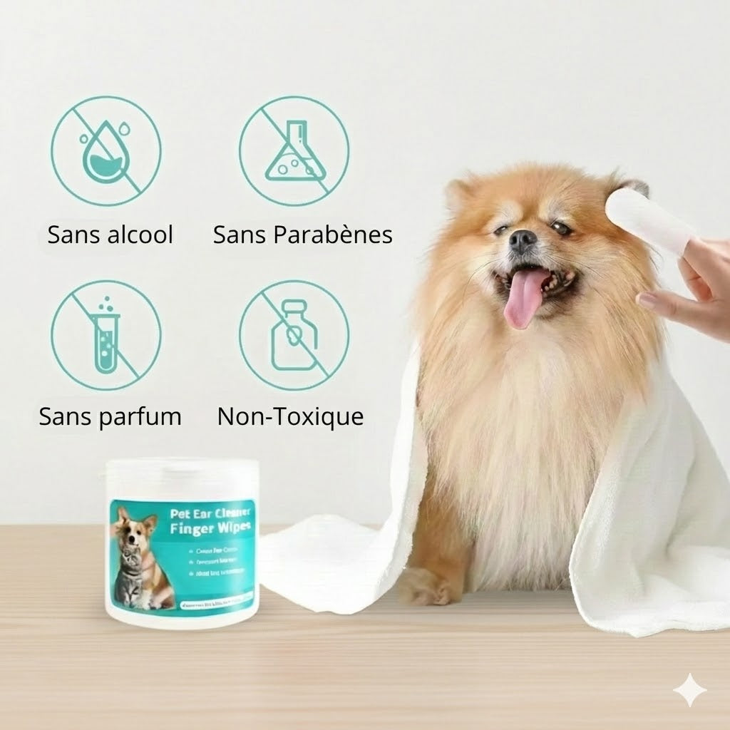 Lingettes nettoyantes jetables pour les oreilles des animaux x50